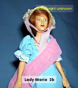 Frances Trattles - Was the daughter of the innkeeper of “The Rose and Crown” at Newport, IoW, made famous for giving a rose to King Charles I, as he rode by, on his way to Carisbrooke Castle. The doll is shown holding a rose, in rememberance of this act of kindness and loyalty to the king